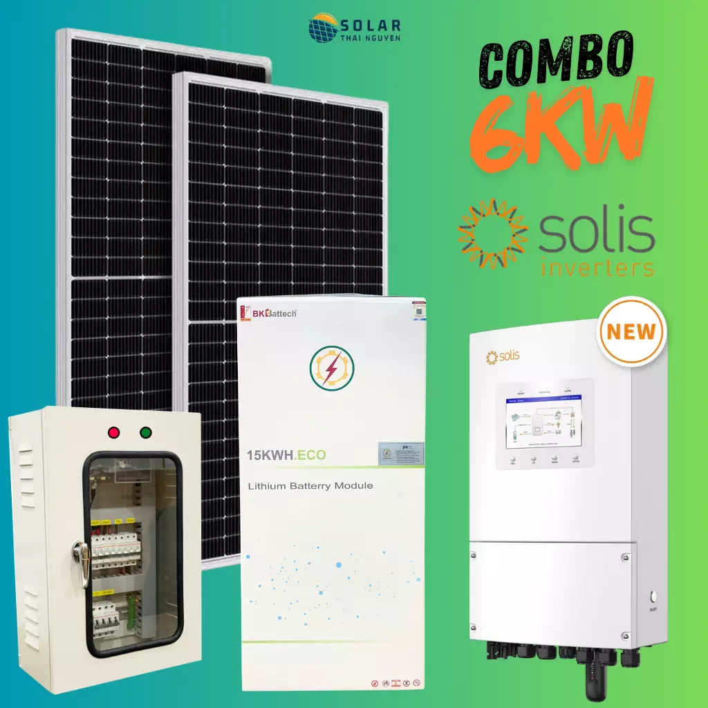 Công ty TNHH Solar Thái Nguyên – Đại lý phân phối và bảo hành chính hãng tấm pin năng lượng mặt trời và biến tần năng lượng mặt trời trên địa bàn tỉnh Thái Nguyên. Hân hạnh mang đến quý khách hàng combo vật tư lắp đặt điện mặt trời 6KW Hybrid. Quý khách cần hỗ trợ kỹ thuật xin vui lòng liên hệ hotline Điện mặt trời Thái Nguyên – 0986.060.540.