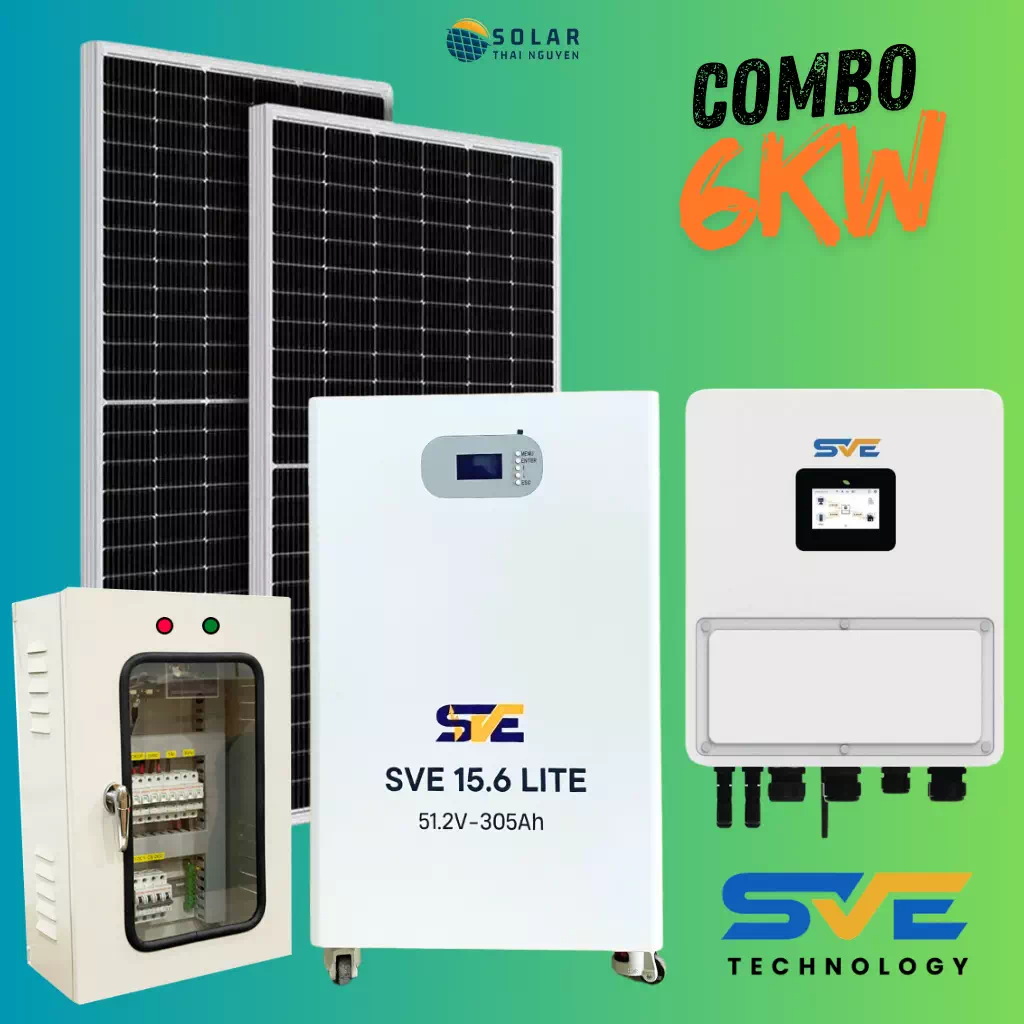 Công ty TNHH Solar Thái Nguyên – Đại lý phân phối và bảo hành chính hãng tấm pin năng lượng mặt trời và biến tần năng lượng mặt trời trên địa bàn tỉnh Thái Nguyên. Hân hạnh mang đến quý khách hàng combo vật tư lắp đặt điện mặt trời 6KW Hybrid thương hiệu SVE. Quý khách cần hỗ trợ kỹ thuật xin vui lòng liên hệ hotline Điện mặt trời Thái Nguyên – 0986.060.540.